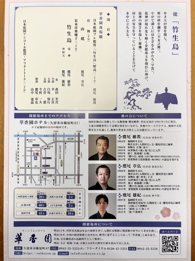 久留米・萃香園ホテルにて、夜桜能を開催いたします。