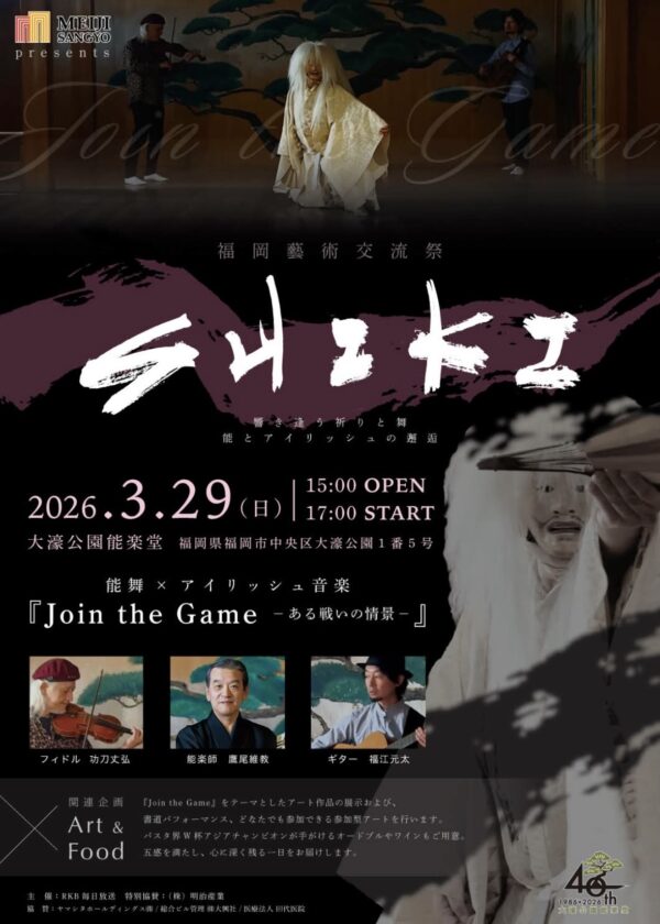 アイリッシュ音楽と能舞の公演。記念すべき20回目として地元福岡の大濠公園能楽堂において、アートや書画、グルメやワインなども同時展開するカルチャー融合イベントとして開催いたします! これまで福岡をはじめ…